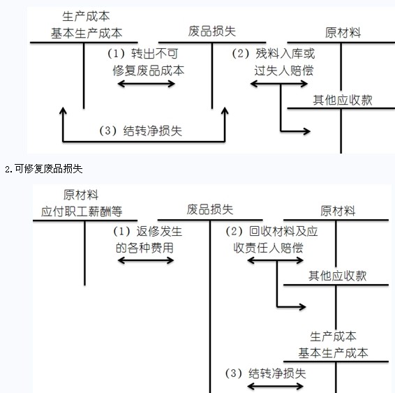 廢品損失概念:是在生產(chǎn)過程中發(fā)生的和入庫后發(fā)現(xiàn)的不可修復(fù)廢品的生產(chǎn)成本,以及可修復(fù)廢品的修復(fù)費(fèi)用,扣除回收的廢品殘料價(jià)值和應(yīng)收賠款以后的損失。