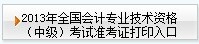 摘要 天津2013年中級會計職稱考試準考證打印入口