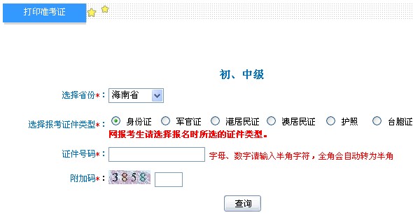 海南省2013年中級(jí)會(huì)計(jì)職稱考試準(zhǔn)考證打印入口