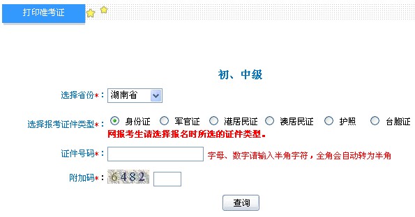 湖南省2013年中級(jí)會(huì)計(jì)職稱考試準(zhǔn)考證打印入口