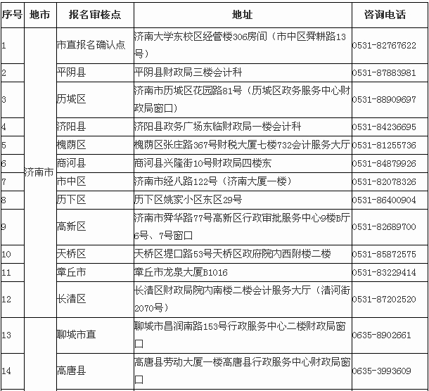 山東考區(qū)2014年度全國(guó)會(huì)計(jì)專業(yè)技術(shù)資格考試報(bào)名現(xiàn)場(chǎng)審核點(diǎn)(初、中級(jí))