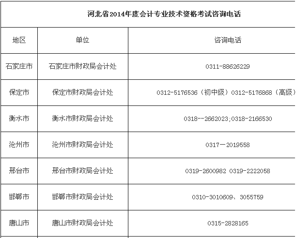 摘要 2014年河北省初級會計職稱考試咨詢電話