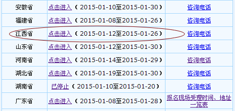 江西省2015年初級(jí)會(huì)計(jì)職稱網(wǎng)上報(bào)名時(shí)間為1月12日-26日,請(qǐng)登陸江西省財(cái)政廳綜合信息網(wǎng)(http://www.jxf.gov.cn)或江西會(huì)計(jì)網(wǎng)(http://acc.jxf.gov.cn)會(huì)計(jì)專業(yè)技術(shù)資格考試報(bào)名入口。
