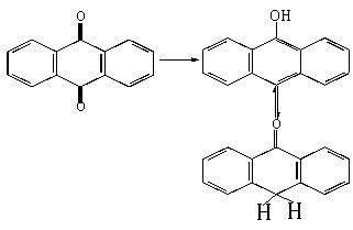 蒽醌在酸性條件下易被還原成蒽酚及其互變異構(gòu)體蒽酮。