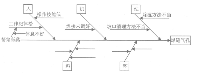 3.①材料因素中應(yīng)包含焊條受潮未烘干、焊條型號(hào)不對(duì)、管道坡口未烘干。②環(huán)境因素中應(yīng)包含空氣相對(duì)濕度飽和、下雨。