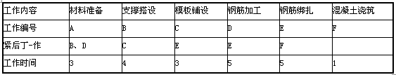 事件2:工程樓板組織分段施工,某一段各工作的邏輯關系見下表: