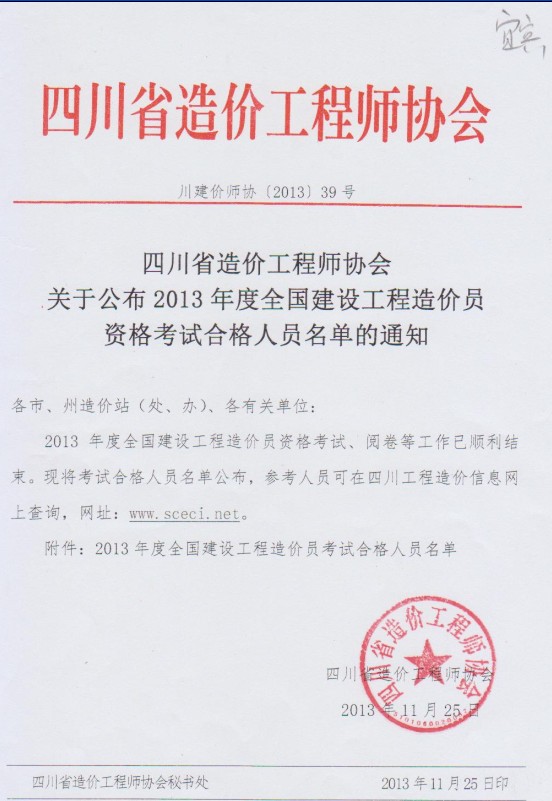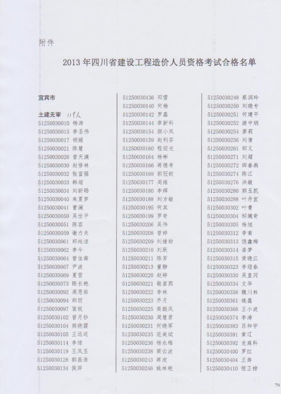 四川宜賓2013年造價(jià)員資格考試合格人員名單