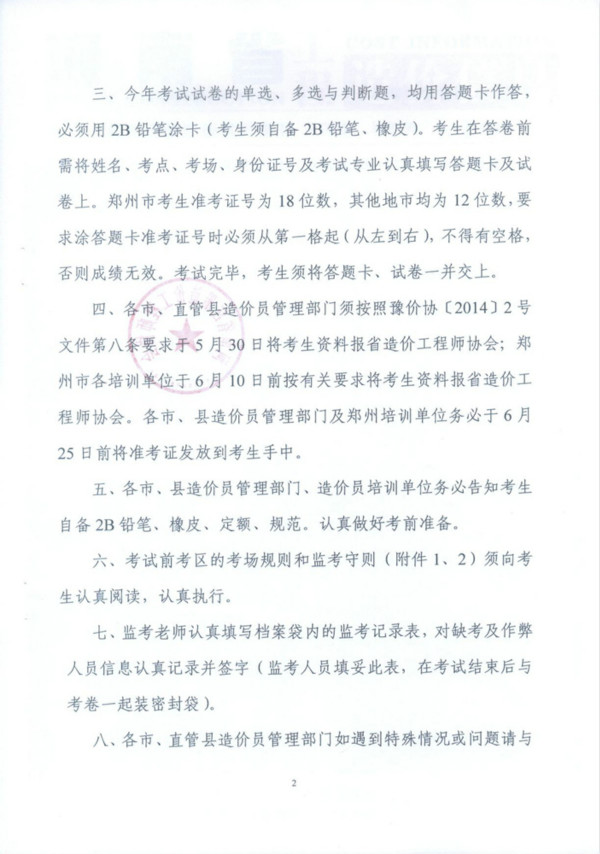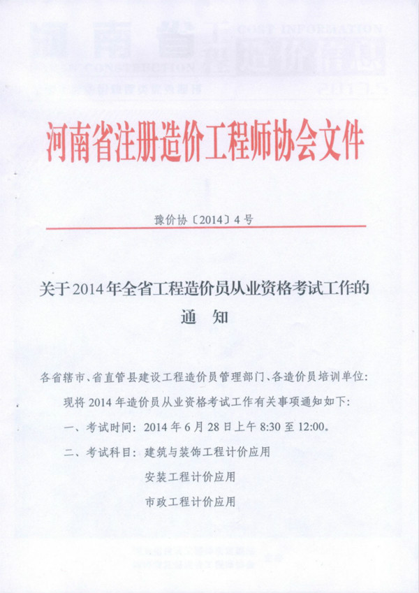 2014年河南省造價員考試工作安排通知