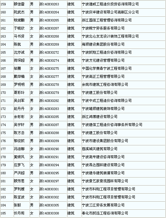 寧波市2014年度造價(jià)員從業(yè)登記合格人員領(lǐng)取證章名單