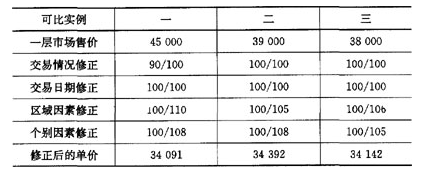 酒店第一層為酒店大堂,第二層出租給某公司經(jīng)營酒樓。第一、二層建筑面積均為2830m2.在當(dāng)?shù)胤康禺a(chǎn)市場上此類房地產(chǎn)的交易實例較多,故采用市場比較法進行估價。