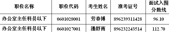 因部分考生放棄面試資格,根據(jù)公務(wù)員招考有關(guān)規(guī)定,擬在公共科目筆試合格的考生中,按照筆試成績(jī)從高到低的順序,遞補(bǔ)以下考生為面試人選: