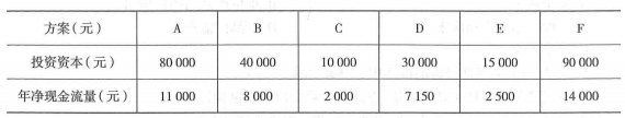 剔除NPV<0的A、E、F方案。NPVD>NPVB>NPVc>0,則選擇D方案為最優(yōu)方案。