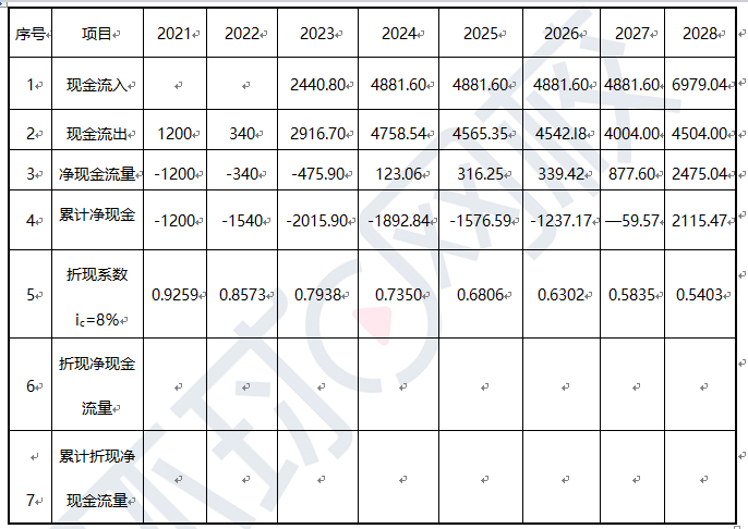 2021年某房地產(chǎn)公司計(jì)劃投資的項(xiàng)目財(cái)務(wù)數(shù)據(jù)如下,假設(shè)各年現(xiàn)金流入流出都發(fā)生在當(dāng)年年末,折現(xiàn)系數(shù)ic=8%,計(jì)算期8年。 計(jì)算下表中未計(jì)算的折現(xiàn)凈現(xiàn)金流量與累計(jì)折現(xiàn)凈現(xiàn)金流量 ,并計(jì)算該項(xiàng)目?jī)衄F(xiàn)值。