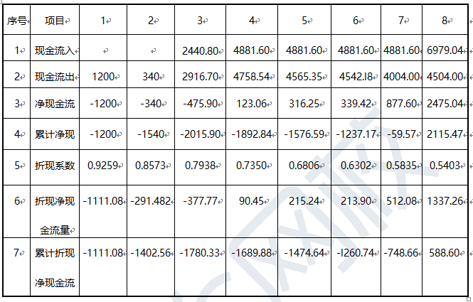 根據(jù)上表可得該項(xiàng)目?jī)衄F(xiàn)值為:588.60萬(wàn)元