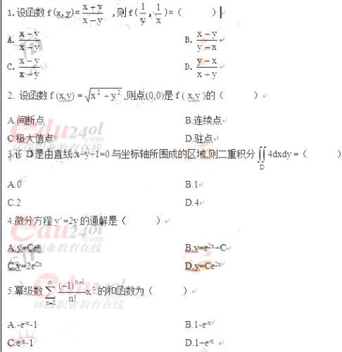 全國(guó)2008年1月高等教育自學(xué)考試高數(shù)(工本)試題
