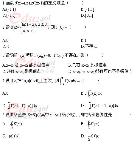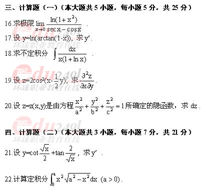 全國(guó)2008年7月高教自考高等數(shù)學(xué)(一)試題