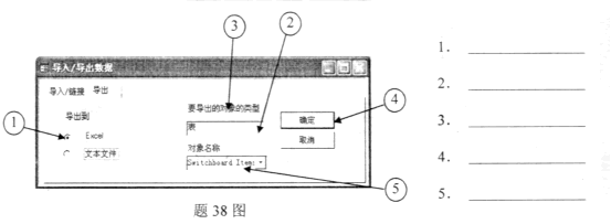 38.在下圖中顯示了一個(gè)窗體,請(qǐng)按圖中的標(biāo)號(hào),在圖右側(cè)的橫線上填寫窗體中各個(gè)控件的名稱。