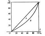 35.下圖是描述某地區(qū)的社會(huì)收入分配差異的洛倫茨曲線,假設(shè)A的面積為0.18,B的面積為0.32,試計(jì)算出該地區(qū)的基尼系數(shù)值并說明其代表的含義。