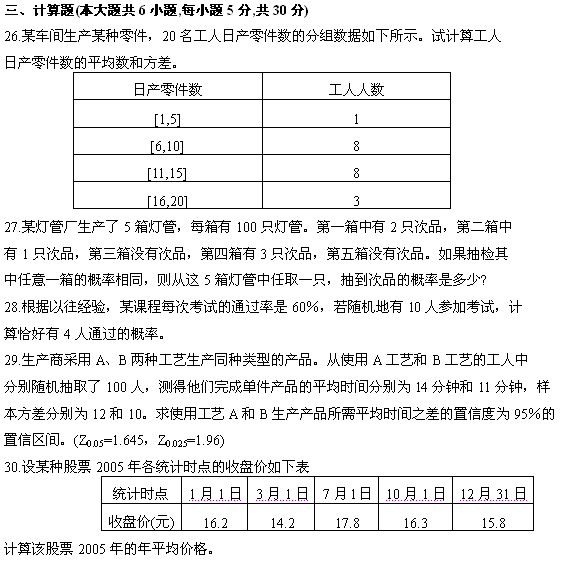 全國2011年4月自學(xué)考試數(shù)量方法(二)試題