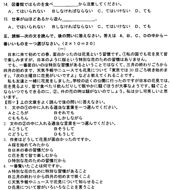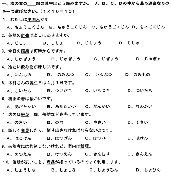 浙江省2011年4月自學(xué)考試日語(yǔ)試題