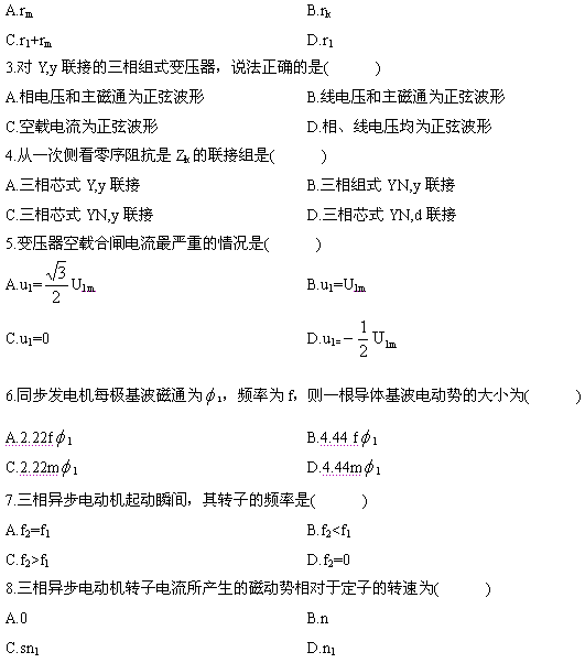 2.將單相變壓器副邊短路,用萬用表歐姆檔在原邊可以測量到( )