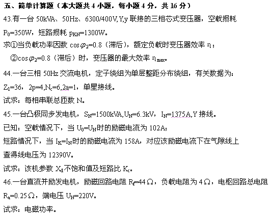 全國2011年4月自學考試電機學試題