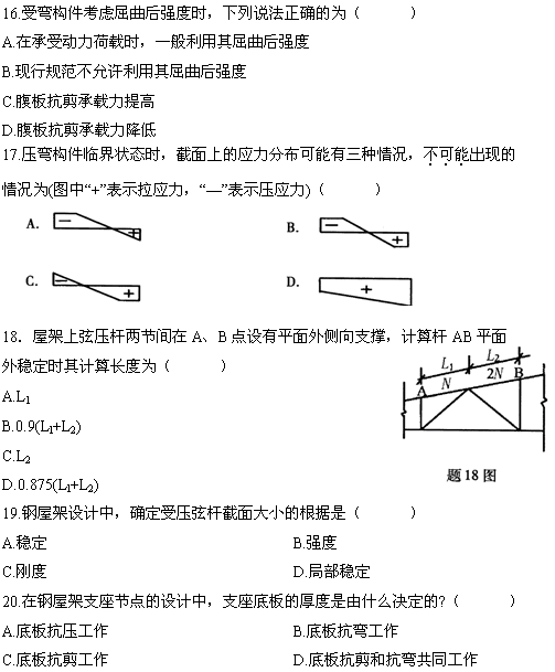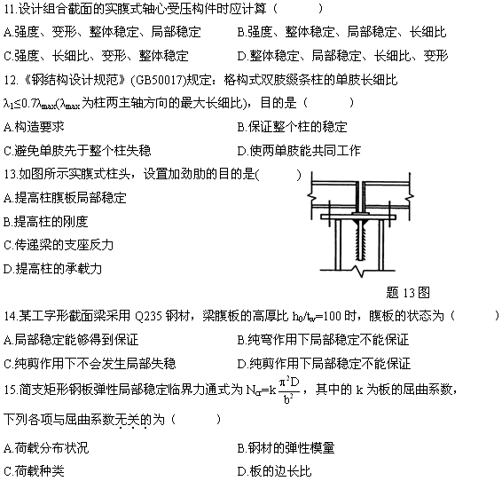 25.在綴條式格構(gòu)柱中,橫綴條不受力,其主要用來(lái)減小柱肢在綴條平面內(nèi)的__________。