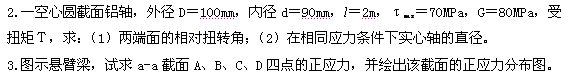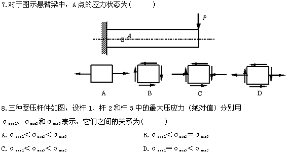 6.圖示梁的A、B、C、D四點(diǎn)中,純剪應(yīng)力狀態(tài)的點(diǎn)是_________,在任何截面上應(yīng)力均為零的點(diǎn)是_________。