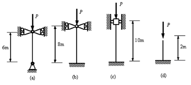 9.圖示四根壓桿的材料、截面均相同,它們在紙面內(nèi)失穩(wěn)的先后次序為( )