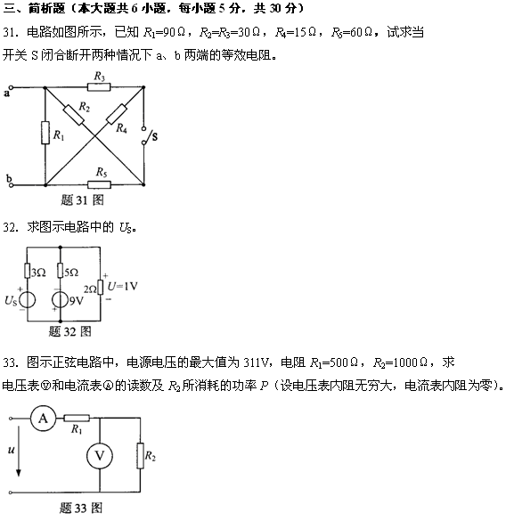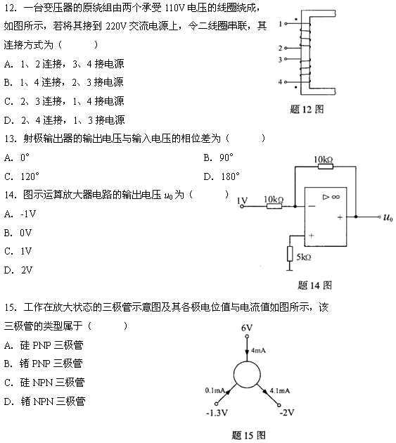 全國(guó)2011年4月自學(xué)考試電工與電子技術(shù)試題
