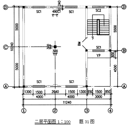 31.試計算下圖所示二層建筑物二層平面的建筑面積。YP為無柱雨篷。(計算結(jié)果保留兩位小數(shù))(5分)