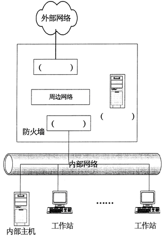 (1)在下面給出的防火墻結(jié)構(gòu)圖的括號中標注組件名稱,并補充缺失的連線。