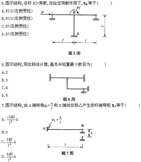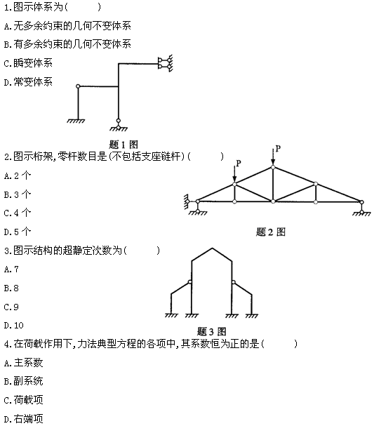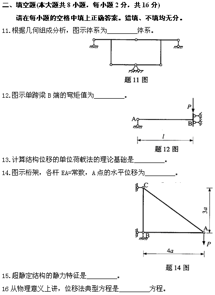 全國2011年4月自學(xué)考試結(jié)構(gòu)力學(xué)(一)試題