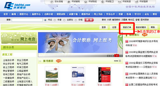 一、進(jìn)入考試書店首頁,點(diǎn)擊我的訂單: