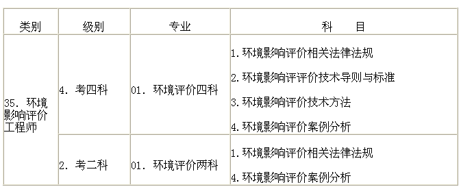 四、環(huán)境影響評價工程師職業(yè)資格考試共設(shè)4個科目:《環(huán)境影響評價相關(guān)法律法規(guī)》、《環(huán)境影響評價技術(shù)導(dǎo)則與標(biāo)準(zhǔn)》、《環(huán)境影響評價技術(shù)方法》和《環(huán)境影響評價案例分析》。前3科為客觀題,在答題卡上作答?!董h(huán)境影響評價案例分析》為主觀題,直接在試卷上作答,閱卷工作由全國統(tǒng)一組織。