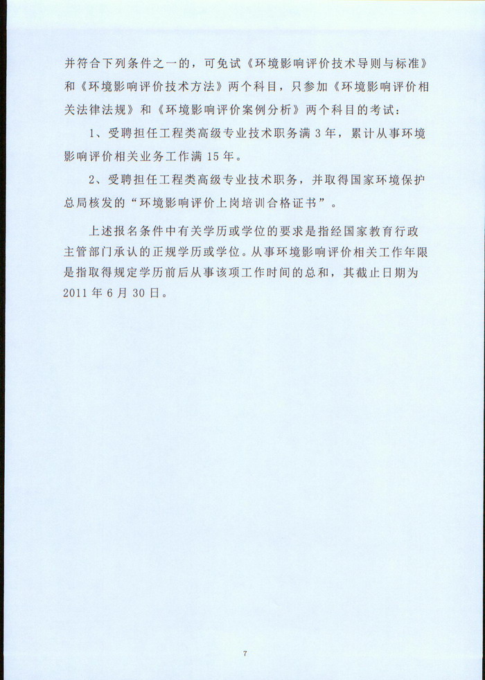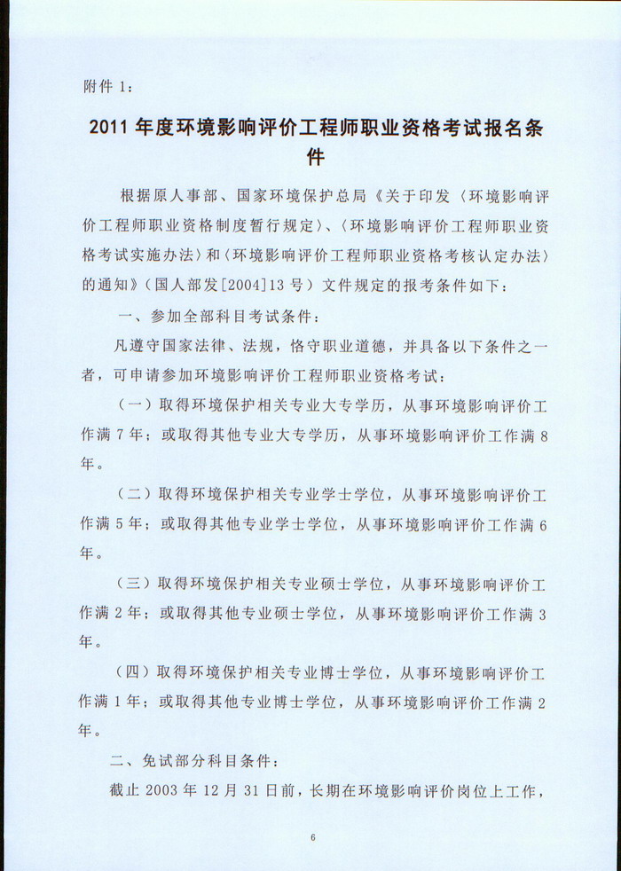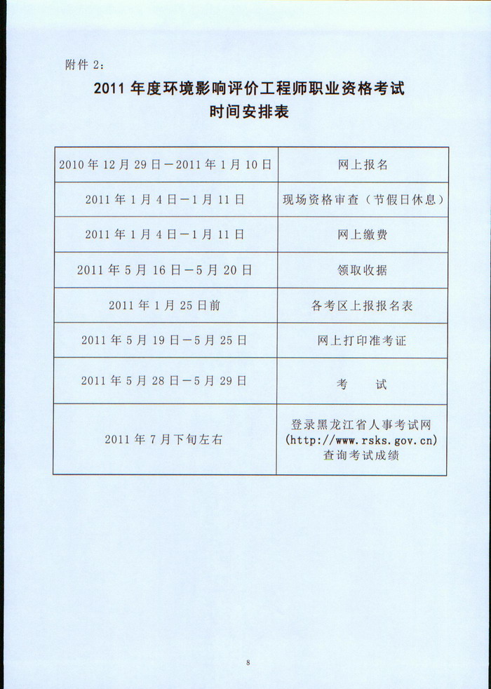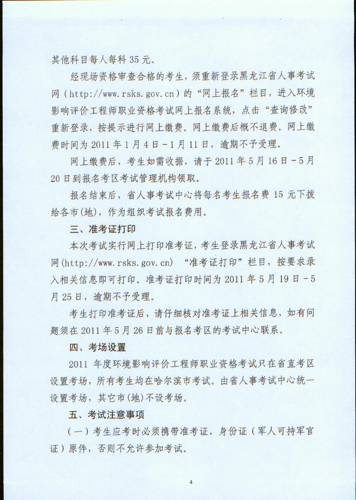 黑龍江2011年環(huán)境影響評價師考試報名12月29日-1月10日