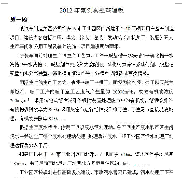 2012年環(huán)境影響評價(jià)師《案例分析》真題及答案(完整版)