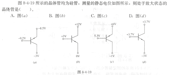 老師回復(fù)a為NPN,UBE=UB-UE=-9.2-(-8.5)<0 UBC<0 b為NPN,UBE=3-0=3V UBC=3-12= -9<0 VCE>0 c為PNP,UBE=5.3-6<-0.7<0 UBC=5.3-(-1)>0 VCE<0 d為NPN,UBE=3.7-(-3)=6.7>0 UBC=3.7-3.7=0 三極管工作在放大區(qū)條件是:發(fā)射結(jié)正偏;集電極反偏。a圖發(fā)射結(jié)不正偏,d集電結(jié)不反偏,放大時(shí),硅管電壓UBE一般為0.6~0.7V,且對(duì)NPN有:VC>VB>VE 對(duì)PNP有VC