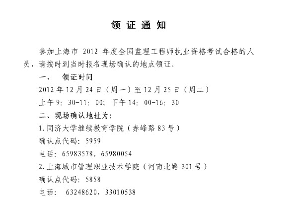 上海2012年監(jiān)理工程師合格證書領(lǐng)取通知