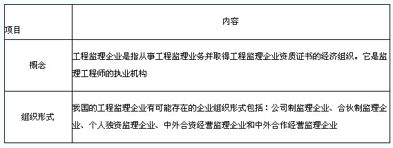 1.工程監(jiān)理企業(yè)的概念與組織形式(表2-4)