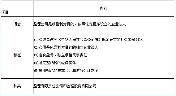 2.公司制監(jiān)理企業(yè)的概念、特征與種類(表2-5)