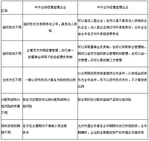 表2-7中外合資經營監(jiān)理企業(yè)與中外合作經營監(jiān)理企業(yè)的區(qū)別