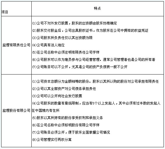 3.監(jiān)理有限責任公司和監(jiān)理股份有限公司的特點(表2-6)