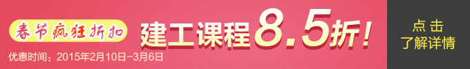 在春節(jié)期間,環(huán)球網(wǎng)校監(jiān)理工程師考試頻道,更是感恩回饋,監(jiān)理工程師考試一系列精品課程8.5折優(yōu)惠。包含,監(jiān)理工程師考試全科VIP套餐,監(jiān)理工程師考試全科精品VIP套餐,可選擇含教材,也可不含教材?;顒?dòng)時(shí)間:2015年2月10日-3月6日,到期恢復(fù)原價(jià)。