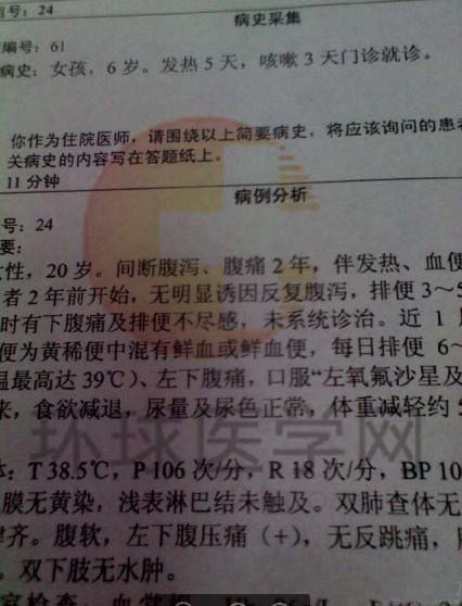2013年臨床執(zhí)業(yè)醫(yī)師實踐技能考生回憶7月1日(5)
