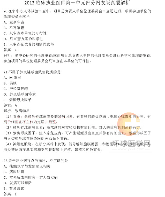 摘要 2013臨床執(zhí)業(yè)醫(yī)師綜合筆試第一單元部分真題解析