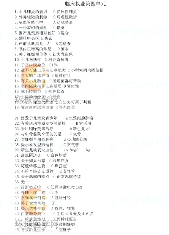 摘要 2013臨床執(zhí)業(yè)醫(yī)師綜合筆試第四單元真題及答案(網(wǎng)友版)