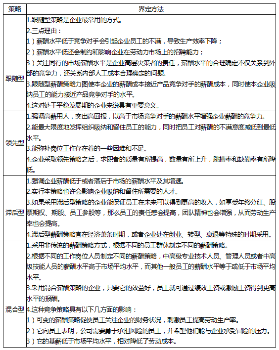 二、 企業(yè)薪酬競(jìng)爭(zhēng)的四種基本策略以及具體策略的選擇和界定的方法(P431-433)
