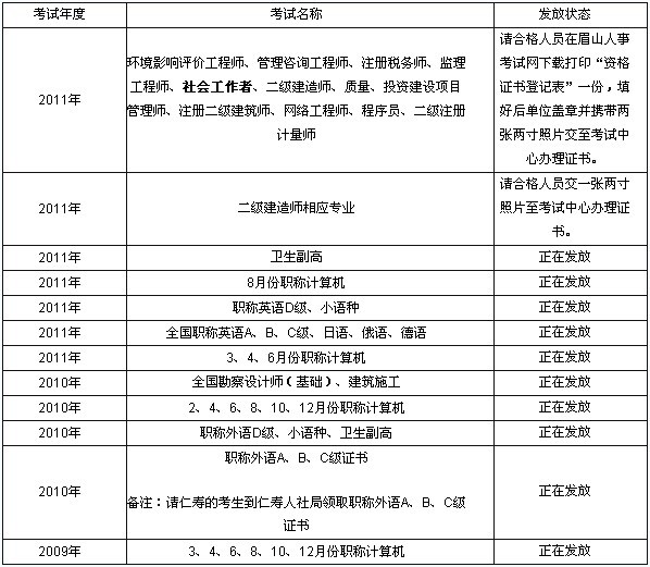 眉山市2011年社會(huì)工作者考試合格證書領(lǐng)取通知