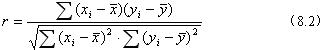 其中:x1和y2分別是X和Y的樣本數據。樣本相關系數是根據樣本數據計算的,抽取的樣本不同,其具體的數值也會有所差異。